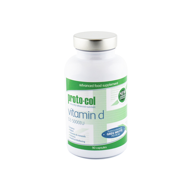 Each proto-col vitamin D tablet contains 5000 international units. Vitamin D is a fat-soluble vitamin and is unique because it functions as a hormone whilst the body synthesises the vitamin from adequate sun exposure. With a lack of sunlight people can become deficient therefore it may be necessary to take vitamin D as a food supplement. At proto-col we use vitamin D3 in this supplement which is the real vitamin D, as it is what is synthesised naturally in our skin from exposure to the sun. This type of vitamin D has a greater absorbency rate within the human body and is an essential vitamin only found in very limited quantities of natural food sources.